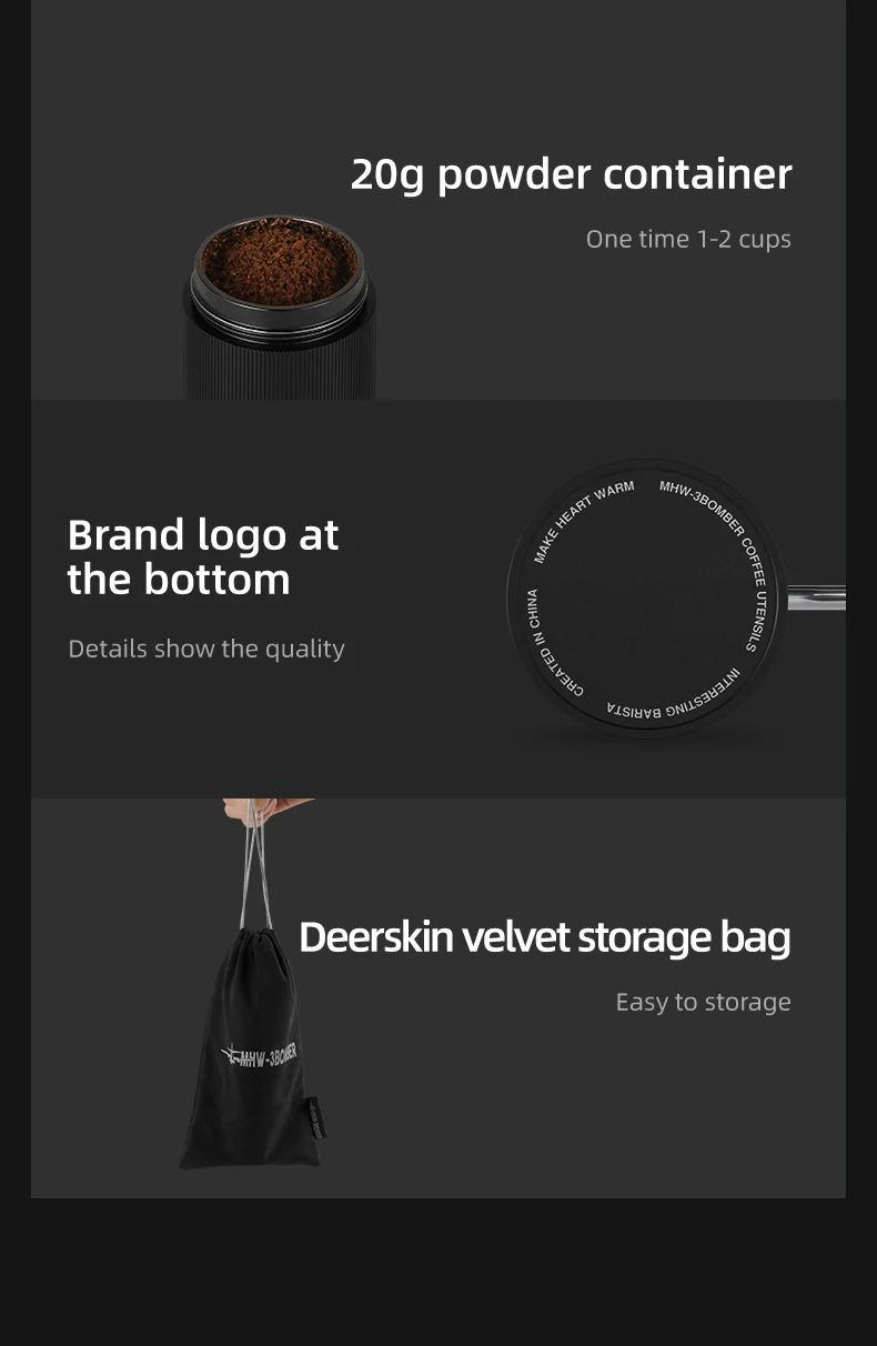 Portability: Unlike bulky electric grinders, manual coffee grinders are compact and lightweight, making them ideal for on-the-go coffee preparation. Whether you're hiking, camping, or simply traveling, manual coffee grinders are easily portable, ensuring freshly ground coffee wherever you are.