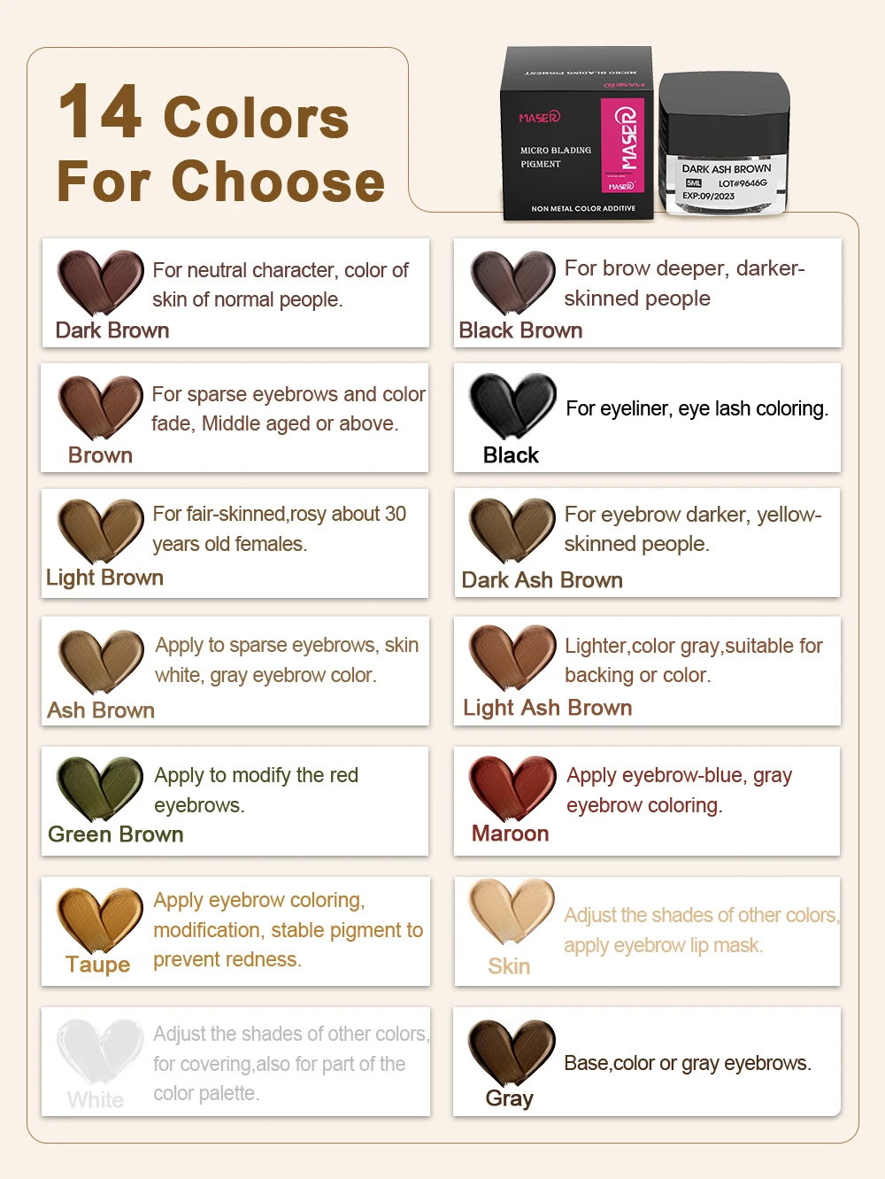 - Color: Brown, 14 colors tatoo pigment
