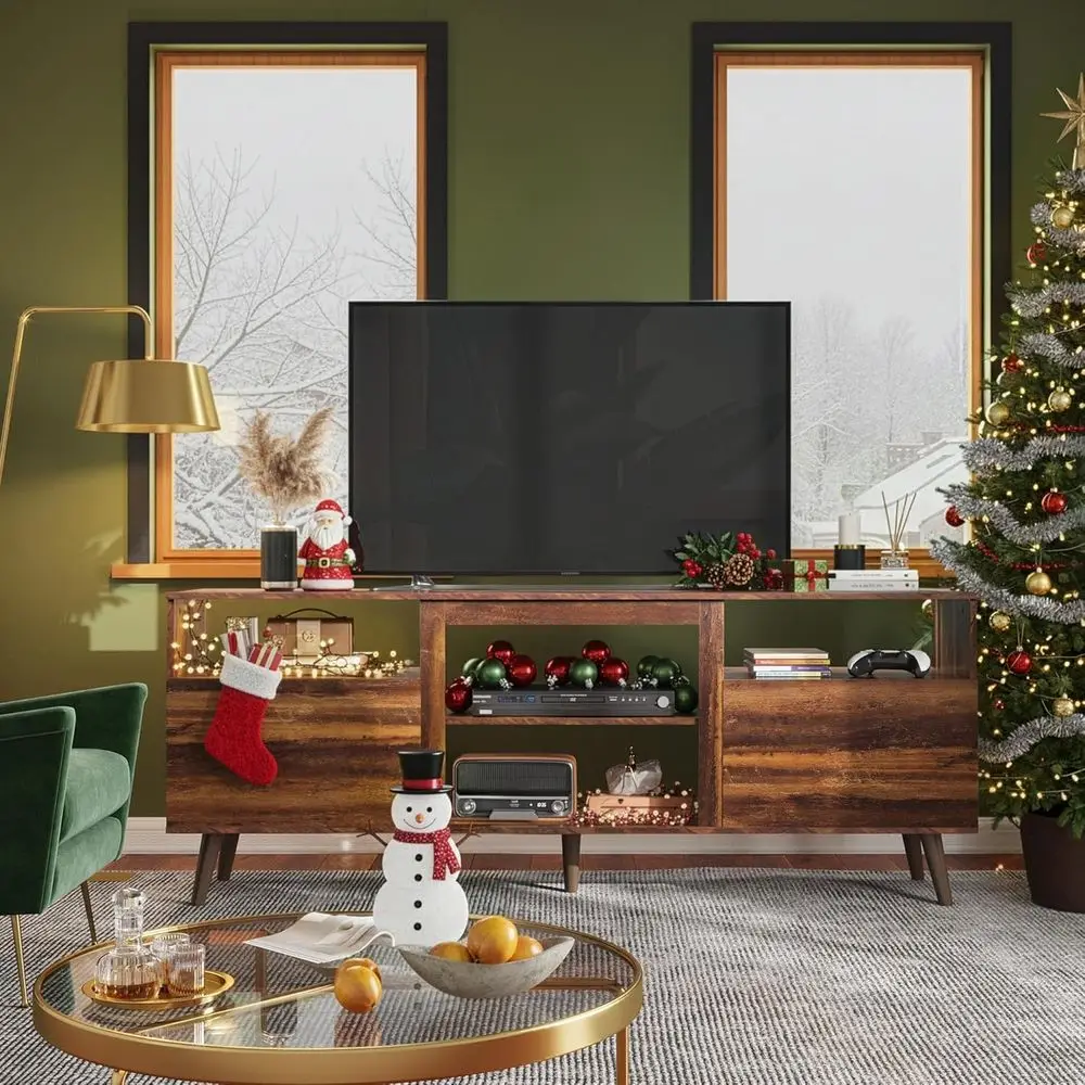 Ample & Intelligent Storage: This TV stand offers an additional open shelf compared to others, providing easy access to gaming consoles, media boxes, or decorative items, thus keeping your living room organized. It features two spacious cabinets and 3-level adjustable shelves behind the door, offering more flexible storage options.