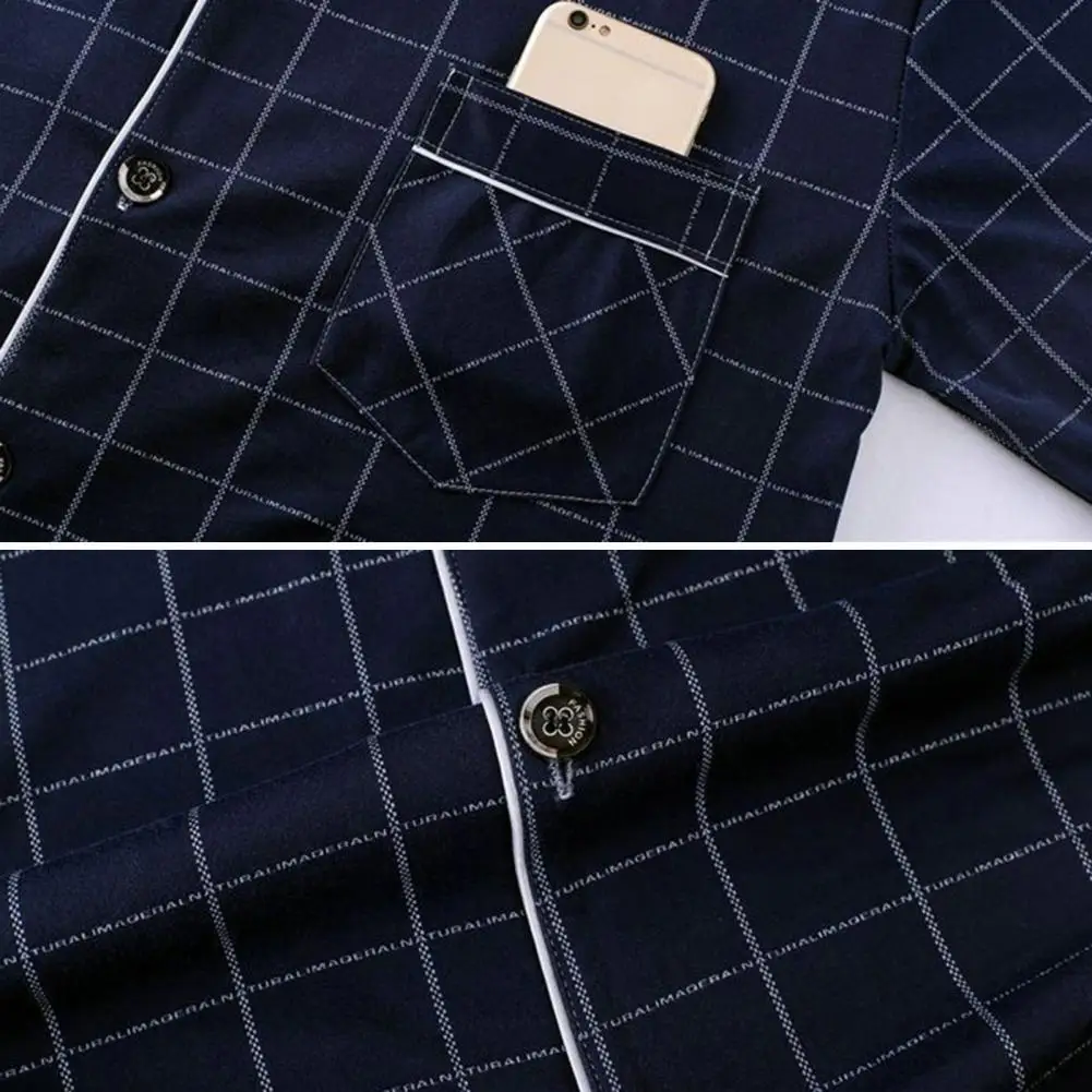 Introducing our Men's pajama set, designed for ultimate comfort and style. Made from polyester fiber with a soft and luxurious milk silk fabric, this homewear suit provides the best wearing experience. The relaxed fit ensures all-day comfort, allowing you to move freely and relax at home. With its printed lapel single-breasted design, this set offers a simple yet sophisticated look. It can be worn as a complete suit or as separate pieces, making it versatile for any occasion. Whether you're lounging at home or stepping out for daily activities, this pajama set is perfect for daily wear. It can also be used as an inner layer during colder weather. Suitable for outings, work, study, travel, and more, our Men's pajama set is a must-have addition to your wardrobe. Experience comfort and style like never before with our premium quality homewear suit.