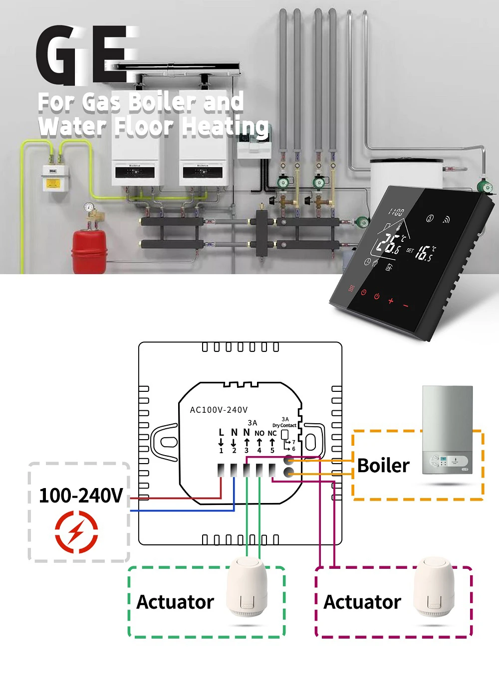 3. GE: Water Heating / Gas Boiler, 3A (with internal sensor)