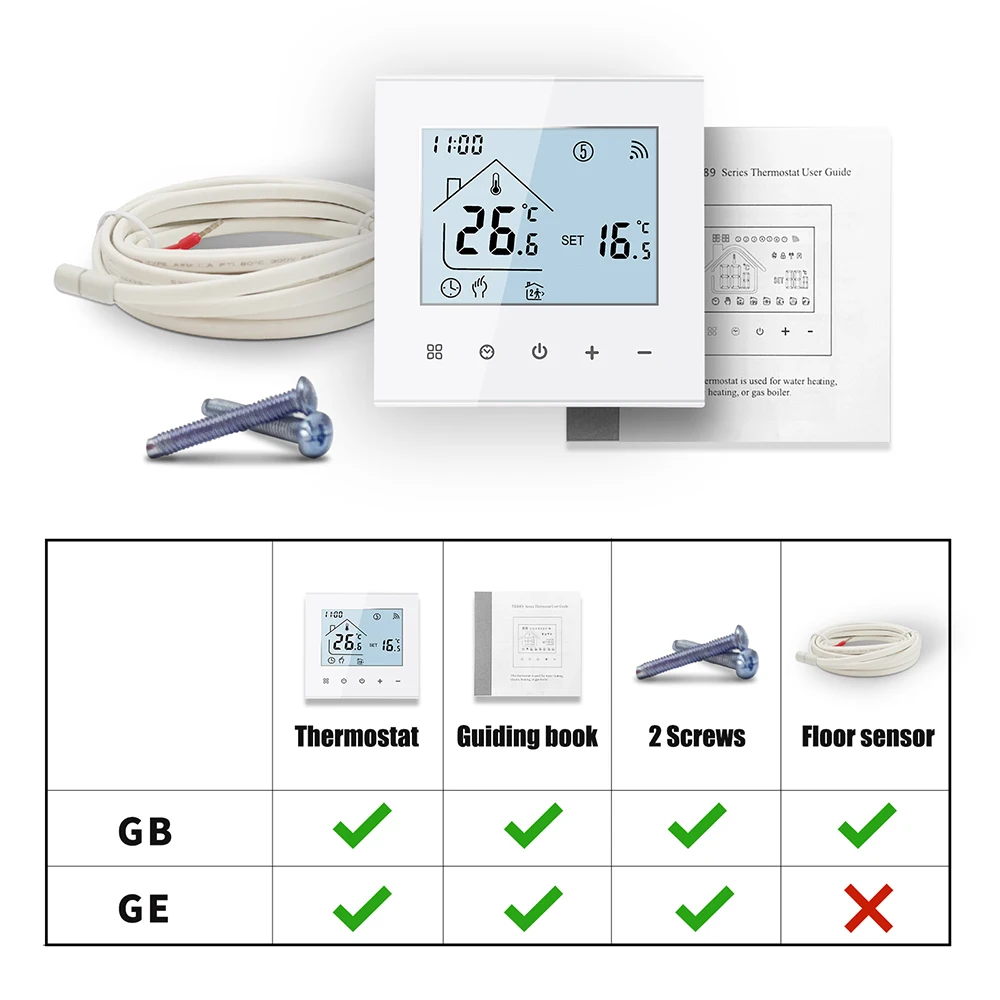 1. GB: Electric floor Heating, 16A (with both internal sensor and floor external sensor)