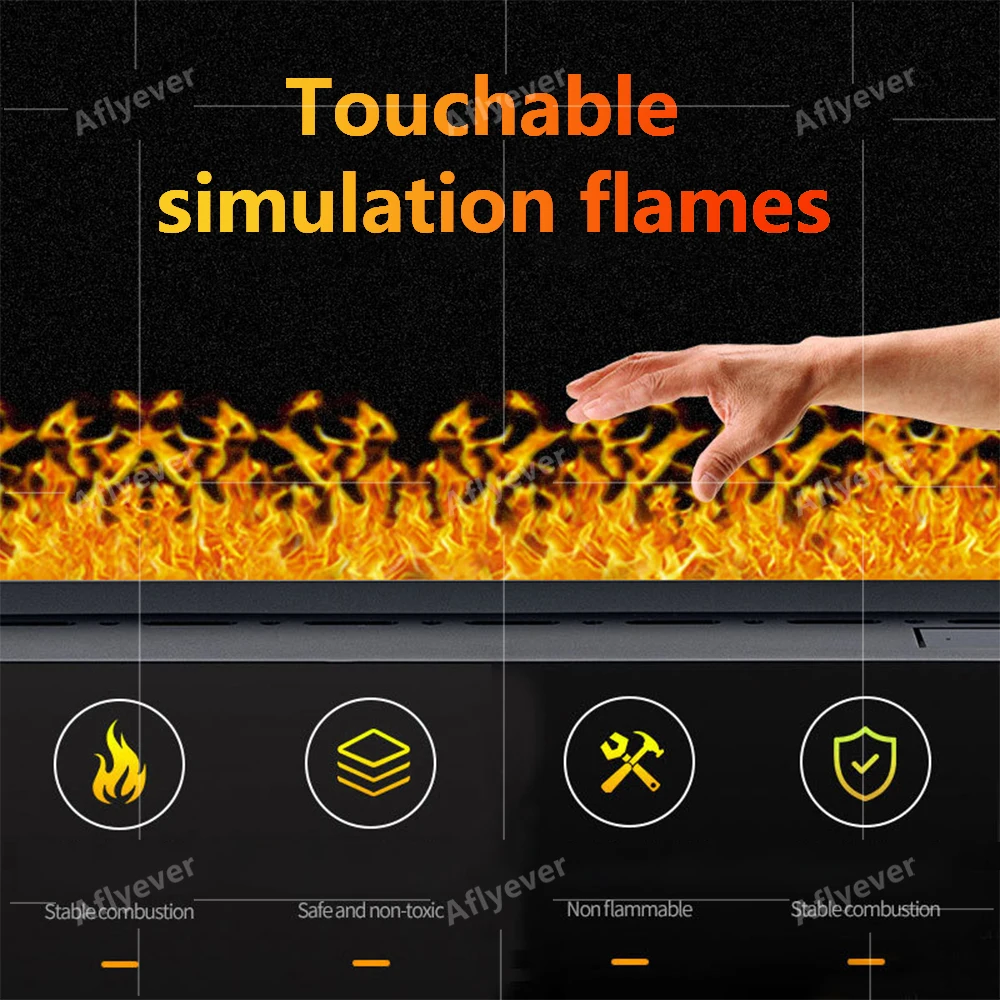 Water vapor fireplace consume pure water only, so it has no risk of fire which compare with traditional wood and gas fireplaces, aslo the flames can be touched and won’t bring any danger to children or pets. It is a 100% fire risk-free fireplace.
