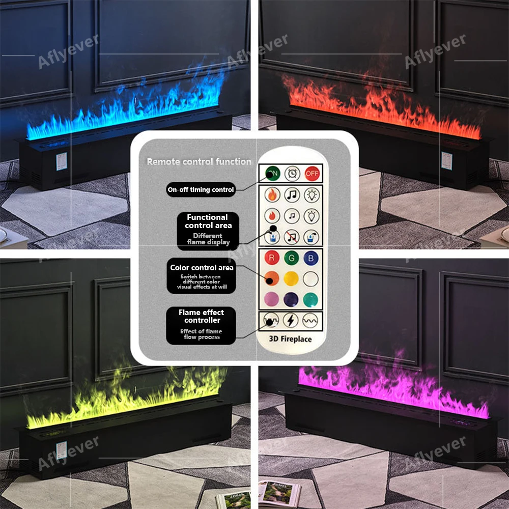 Water vapor fireplace has function of automatic water in and out. when the water is full, it will automatically stop the water fill-in and start to work, when the water is not enough , it will automatically stop working. The working time can be set by remote or Mobile APP directly.