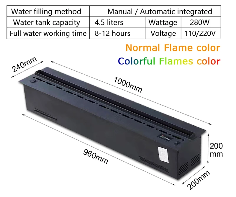 This fireplace has MANUAL/AUTOMATIC Integrated two water filling functions.