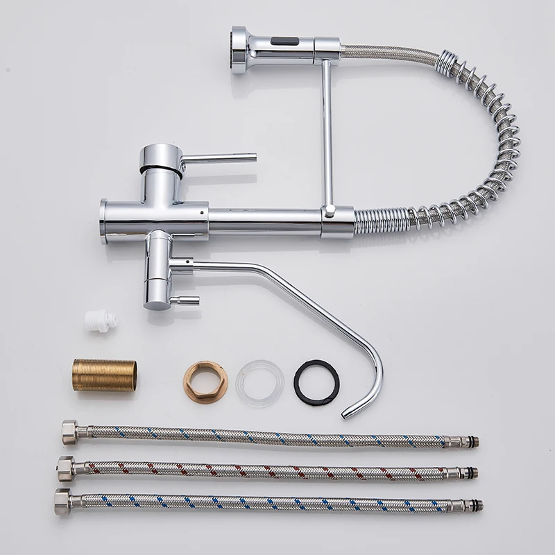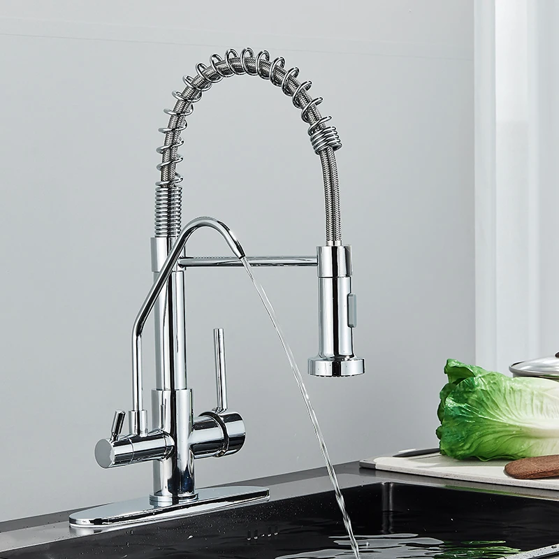 Chrome Waterfilter taps kitchen faucets Dual Handle Deck Mounted Mixer Tap 360 Degree rotation Water Purification Feature Crane