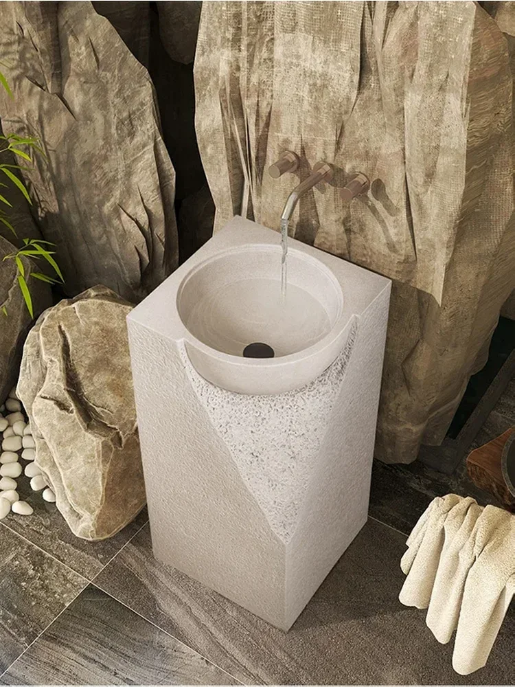 Modern freestanding art sink; stone creative wash basin can be used for bathroom balcony outdoor garden wash basin