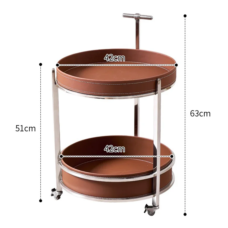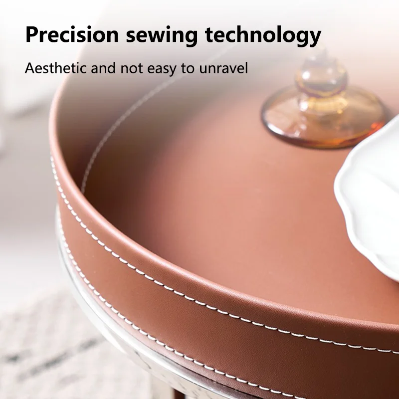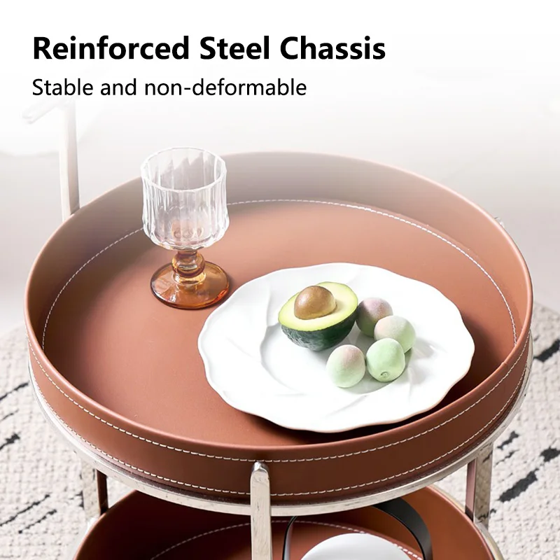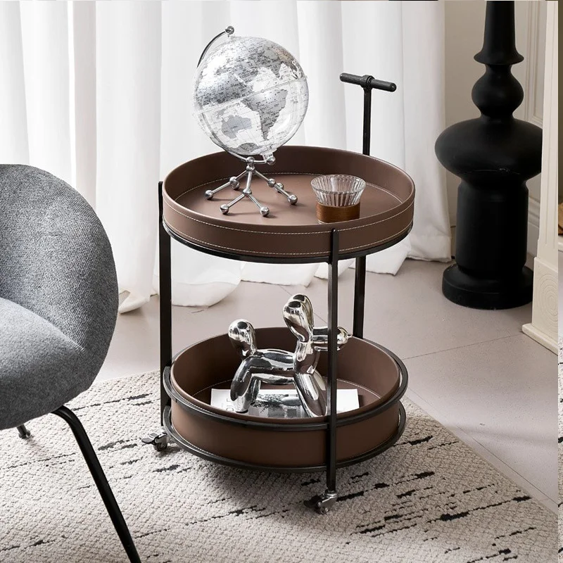 Luxury Leather Mobile Side Table with Brake Caster for Living Room Modern Sofa Side Tables Home Office Metal Frame Round Trolley Furniture