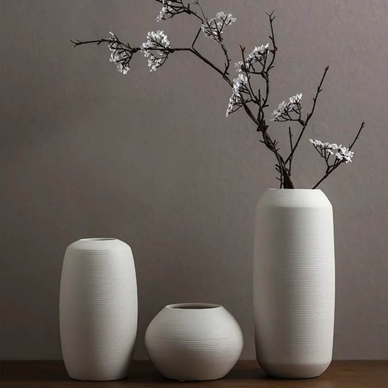 [Package Includes]:1 x White Brushed Ceramic Vase
