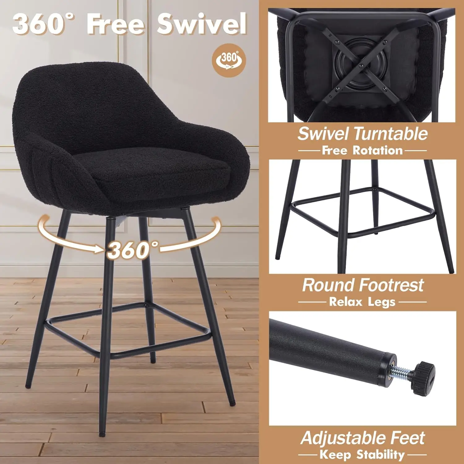 【360-DEGREE SMOOTH SWIVEL】 Experience ultimate flexibility with the integrated 360-degree swivel mechanism. These counter-height bar stools allow you to turn effortlessly, making them perfect for socialising in the kitchen or as versatile seating in your entryway.
