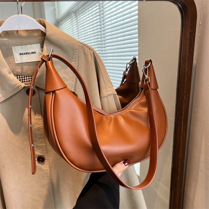 A modern, perfectly sized silhouette made from soft leather, Softer than a classic rectangular or square bag.