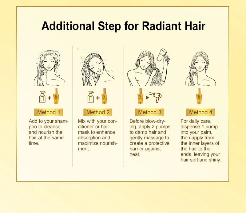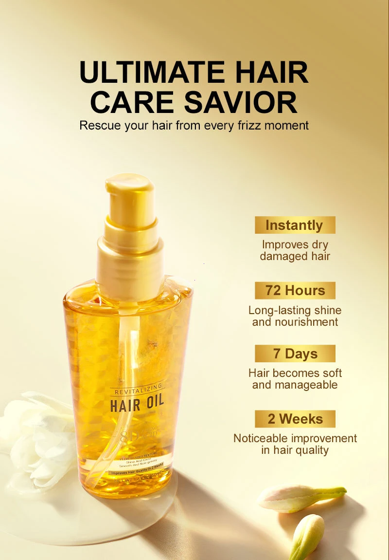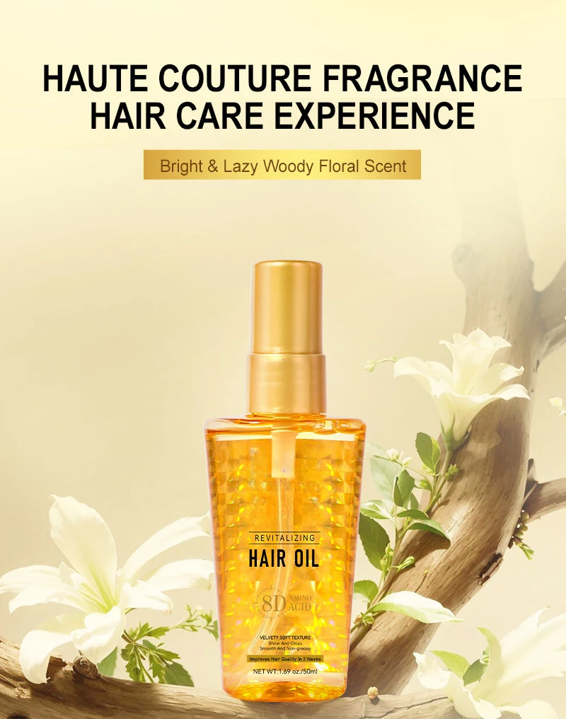 Formulated with a blend of rare and precious essential oils, this hair oil deeply nourishes every strand, exuding a captivating fragrance. The lightweight oil texture delivers rapid nourishment, offering comprehensive care for dull and dry hair. It imparts a dazzling shine, making hair light and airy like a cloud, yet as soft and smooth as down feathers. The result is irresistibly alluring hair, full of charm and vitality.