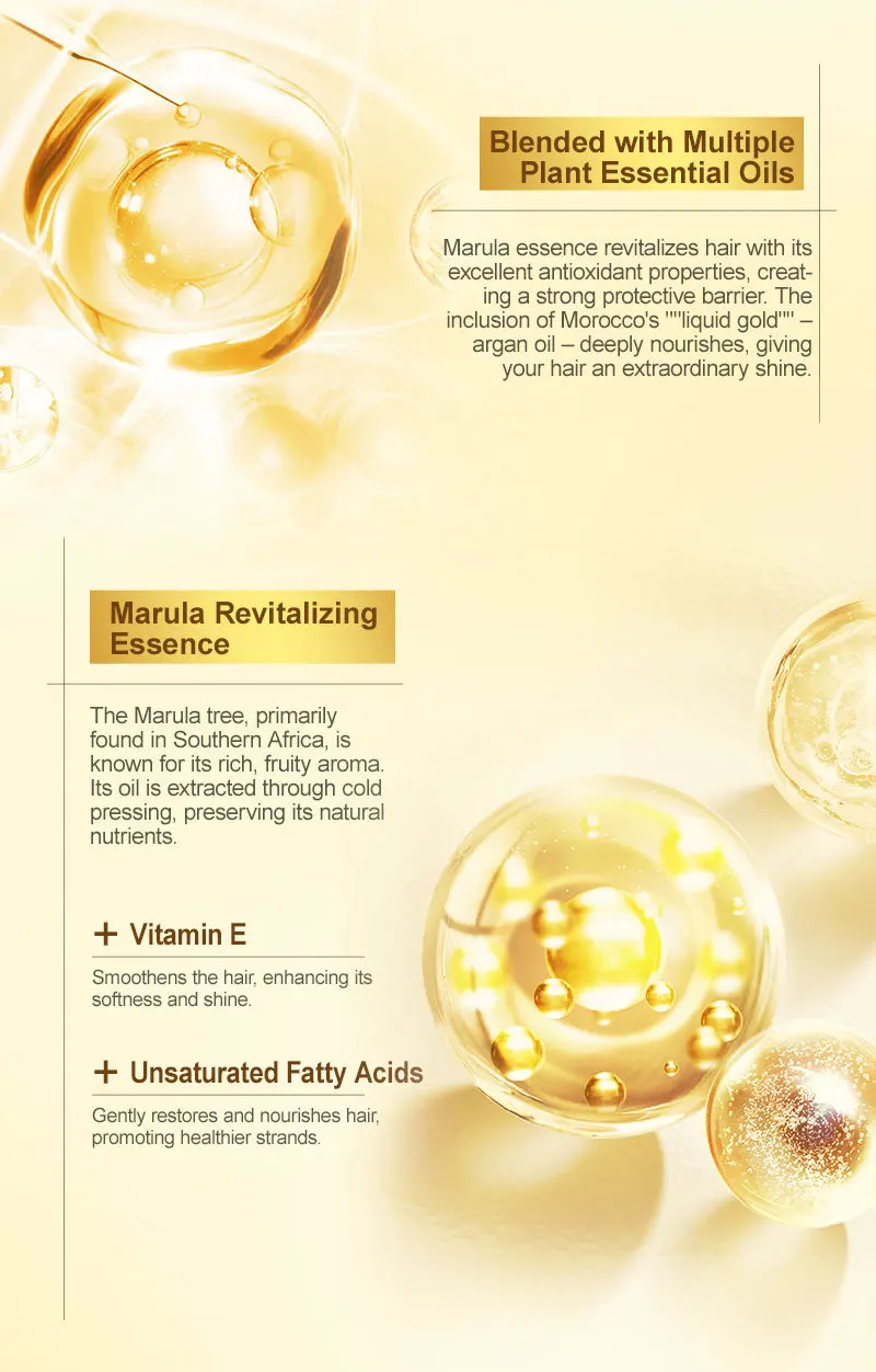 Argan + Marula + Camellia oils fuse to rebuild broken keratin bonds with 89% less split ends in 3 weeks