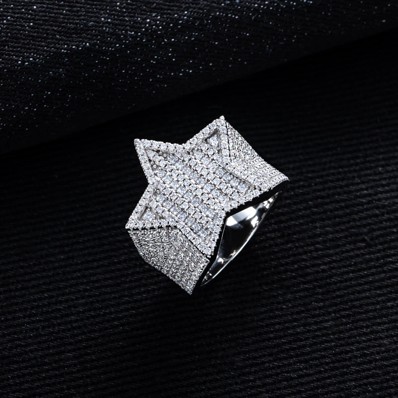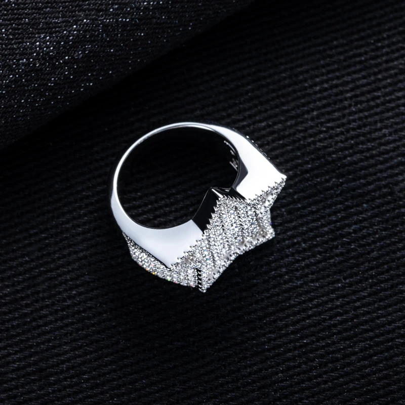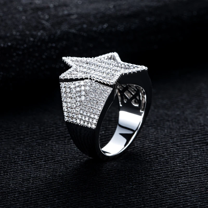 MossanRappr’s ring features a striking pentagram shape, blending hip hop edge with unique fashion appeal.
