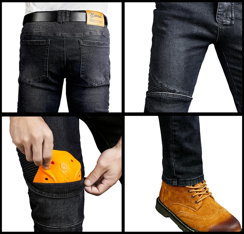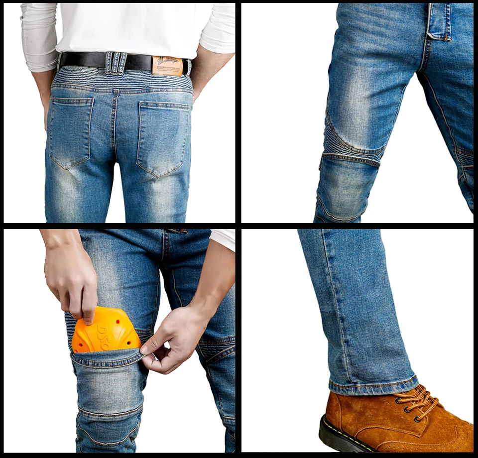 Smocking design at front knees and back waist, make you move freely and feel comfortable while riding a motorcycle.