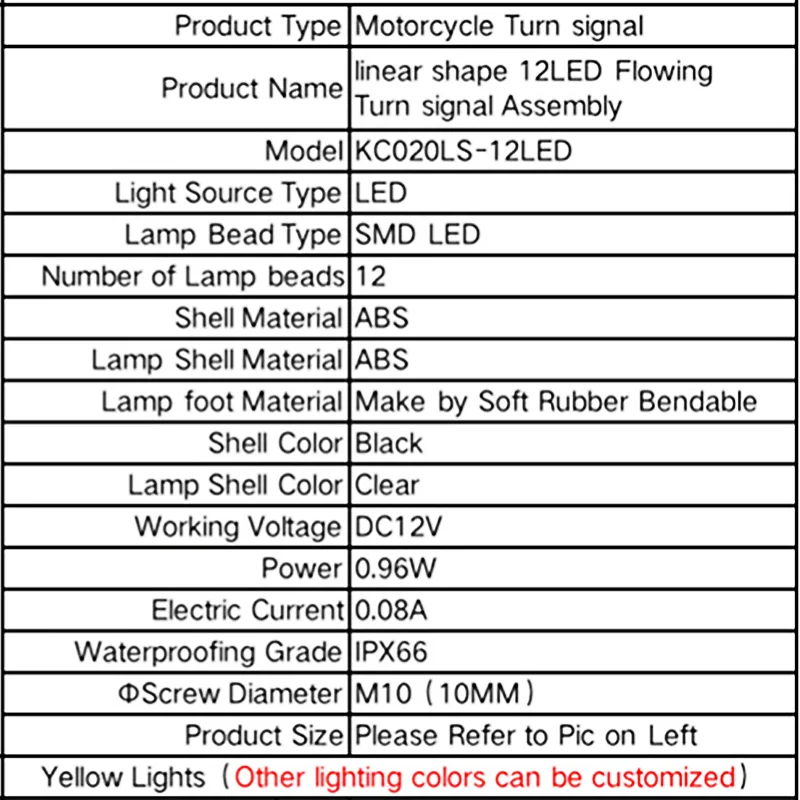 - Features 2: Motorcycle turn signal Light