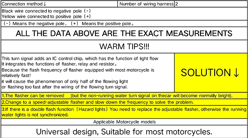 As most motorcycles flash faster, will lead the flow of light turn signal only half work, it is recommended to use with two pin adjustable frequency flasher.
