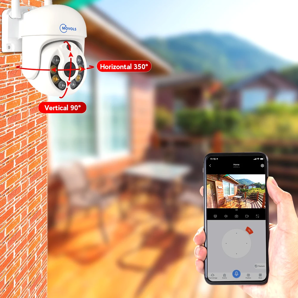 MOVOLS surveillance camera has a body and housing with an IP66 waterproof rating. So you can feel free to install it outdoor, like in your garage, backyard, or anywhere else. It can stand harsh weather conditions, including rain, snow, intense cold and heat(-30℃~50℃)