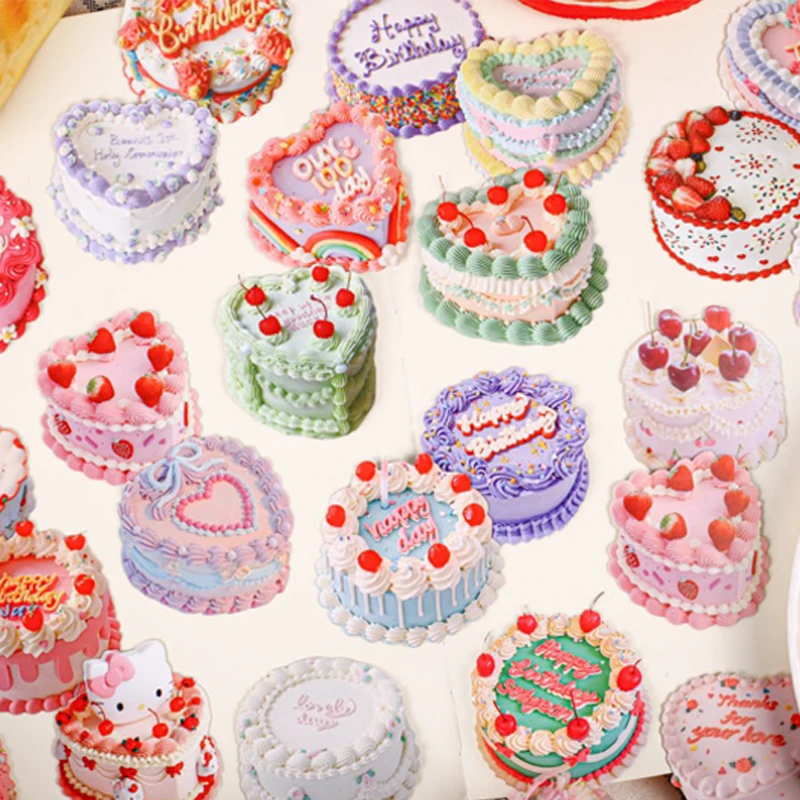 Mr. Paper 3-Pack Cake Stickers – Dessert Theme Journal Decor, Creative Food Collage Material, Fun Theme Stationery DIY Phonecase