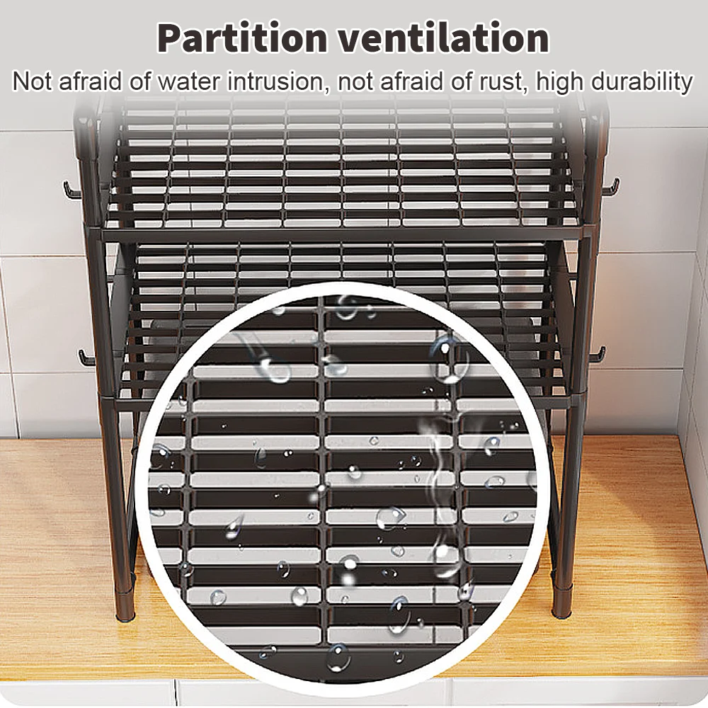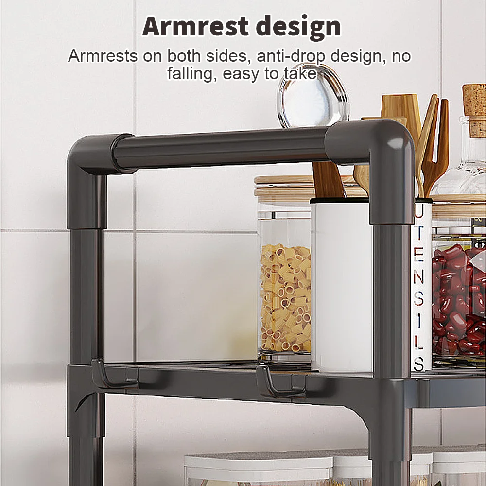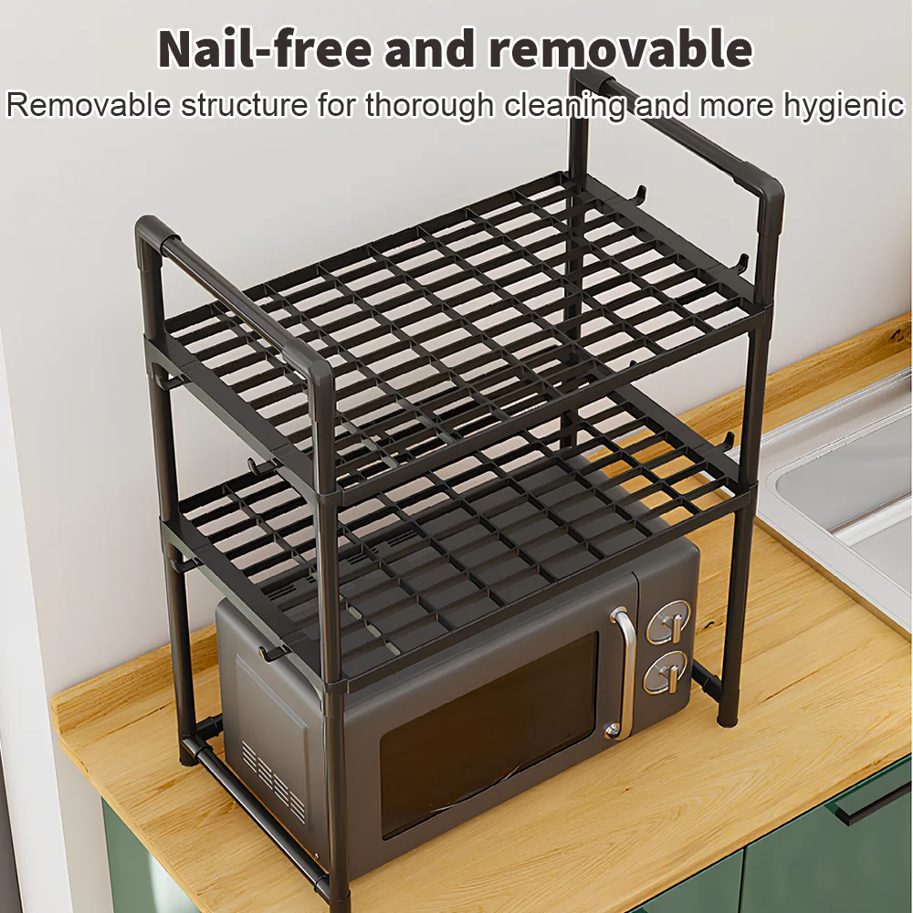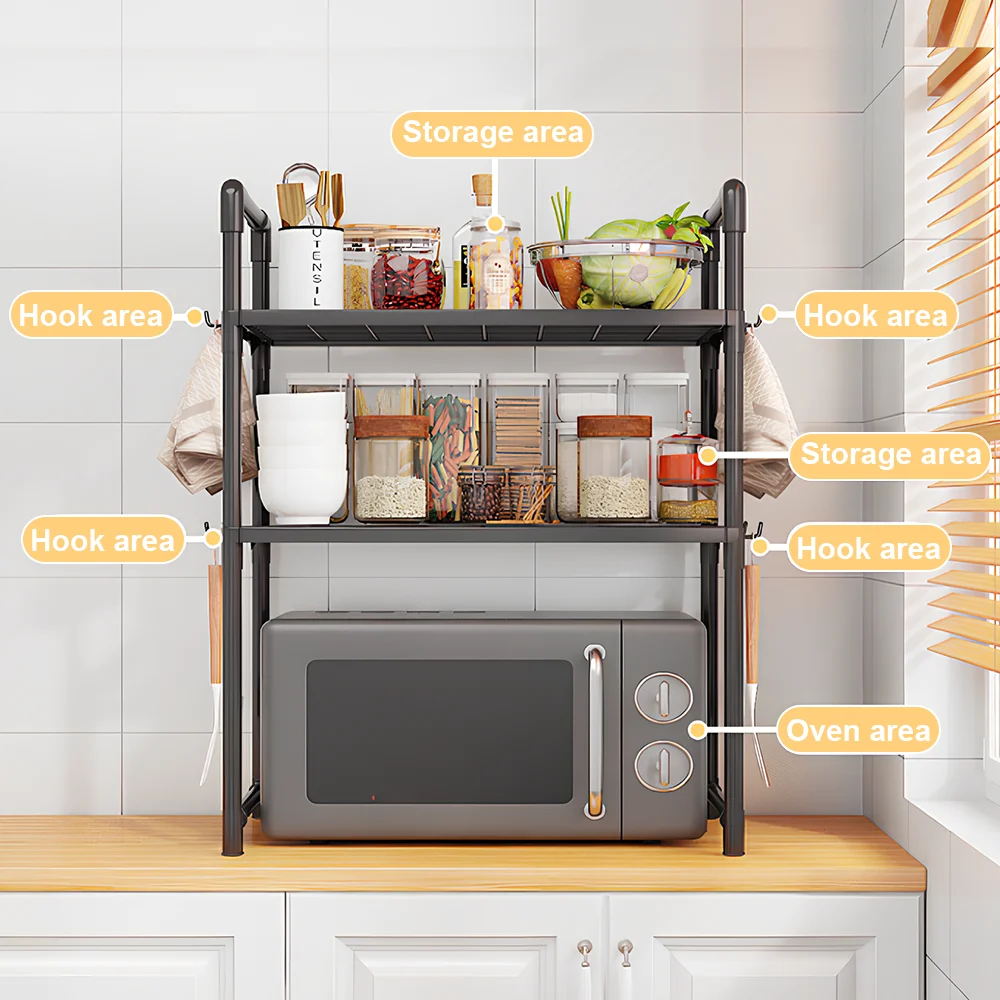 Multi-Purpose Kitchen Storage Rack for Microwave, Oven, Countertop Organizer with Tool Hooks Tidying Shelves Kitchen Accessories