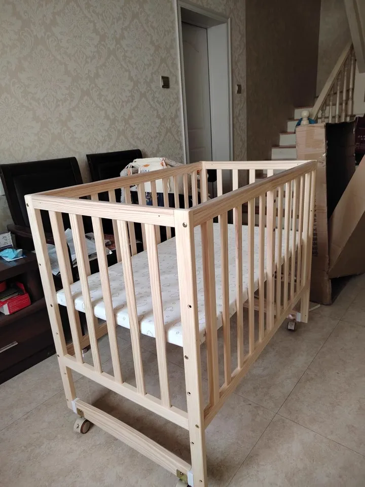 Three levels of bed board can be adjusted. This baby crib is multifunctional, can be turned into a newborn crib, a game bed and kids bed.