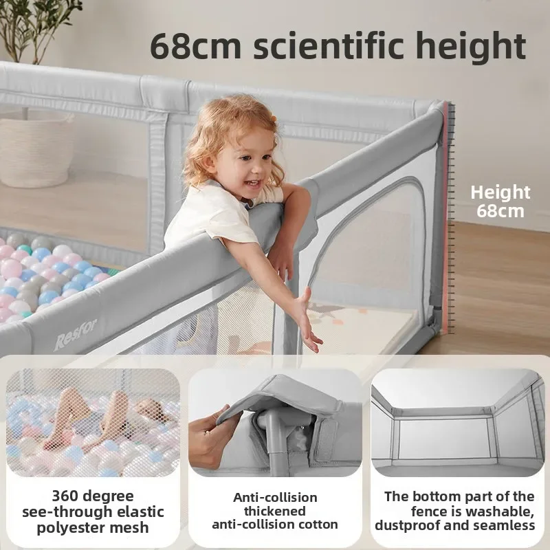 【Safe Protection】High and sturdy guardrail prevents falls, creating a secure area for infants to crawl and play freely.