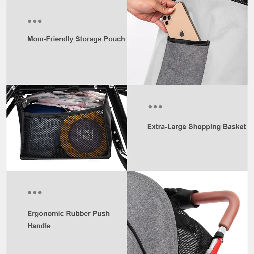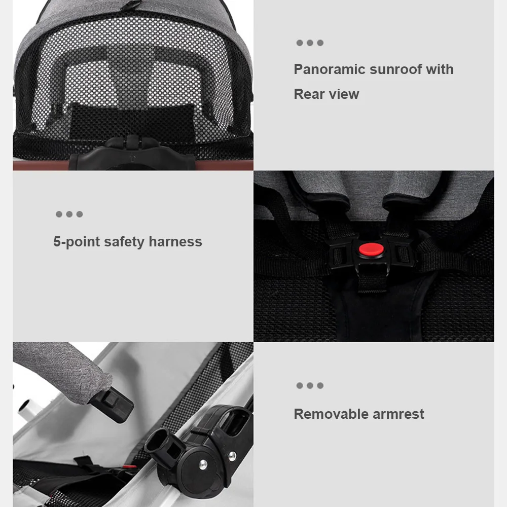 —Four-Wheel Trolley:Equipped with four wheels, the stroller provides stability and smooth movement on various terrains.