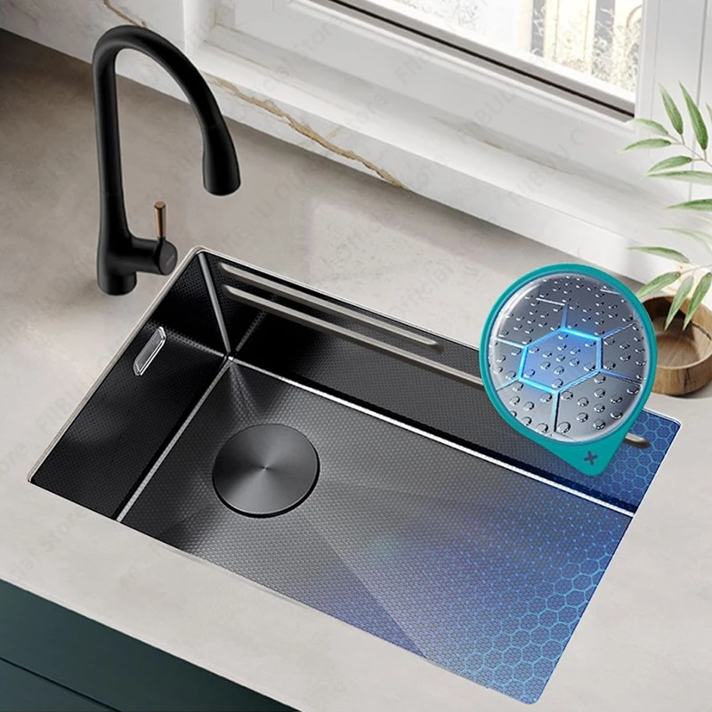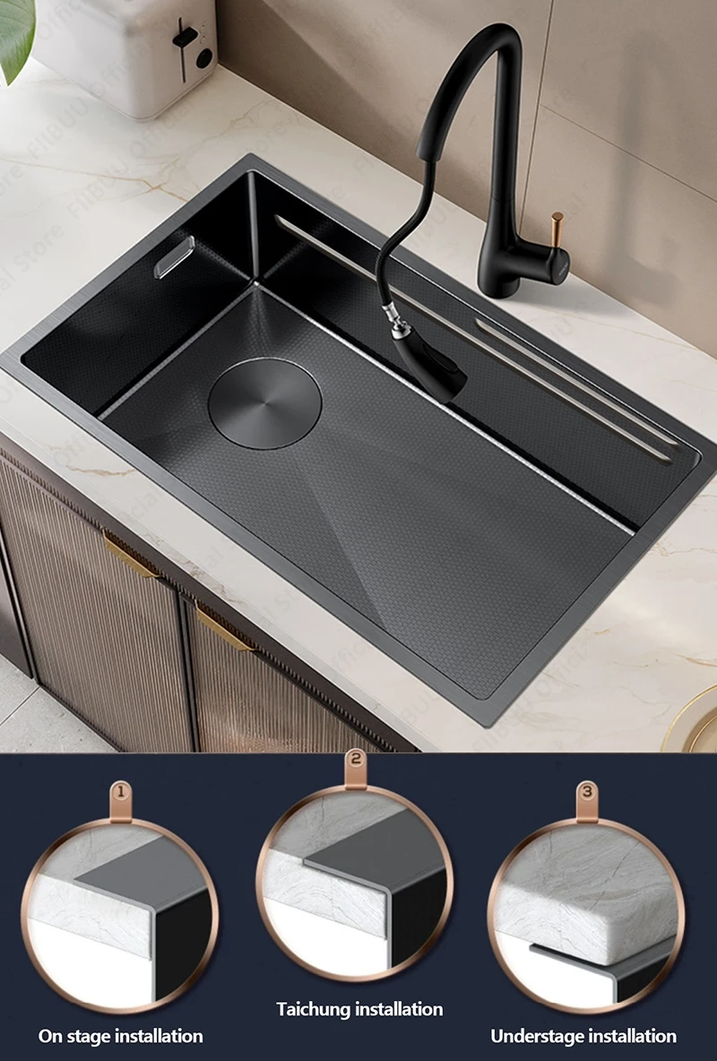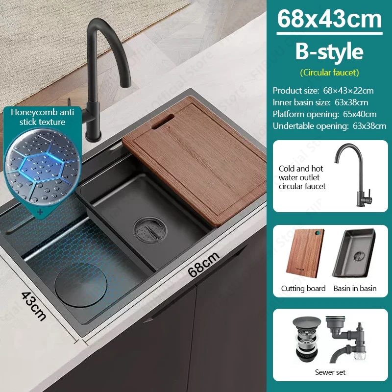 【High-Quality Sink】 Made of stainless steel and thickened as well as reinforced, it resists deformation and features stronger wear resistance.This sink uses honeycomb embossing to better reduce oil residue and reduce cleaning burden.
