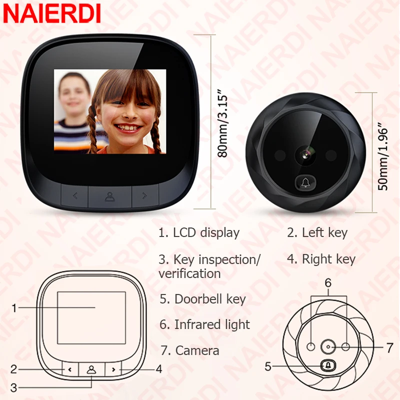 This digital door viewer is with 2pcs IR-LEDS, even in the evening, you can see who is outside the door clearly, make you feel safe for unknown visitors.