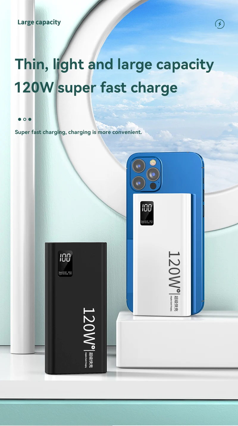 New 120W Power Bank 50000mAh High Capacity Fast Charging Powerbank Portable Battery Charger For iPhone Samsung Huawei Xiaomi