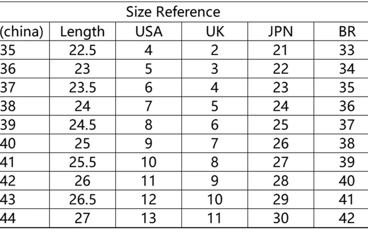*Si tus pies son gordos, pies anchos.Por favor pide 2 tallas más grandes