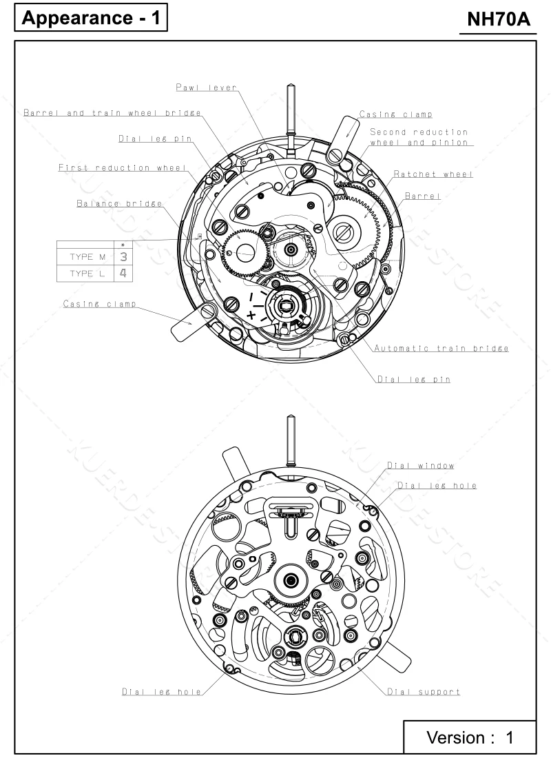 NEW Japan Genuine NH70 NH70A Mechanical Movement 24 Jewels High Precision Skeleton Mechanism Modification Automatic Watch Replace Movement