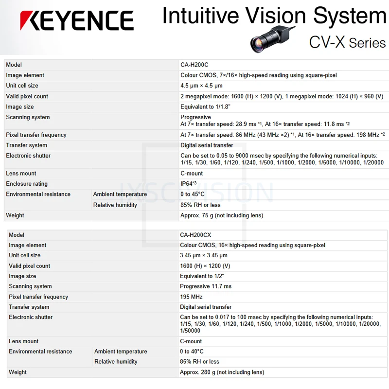 New original Keyence 2MP Industrial Cameras CA-200C CA-H200C CA-H200CX CA-200M CA-H200M CA-H200MX ,Color or Momo, High-speed reading / 7×/16× high-speed / 11×/16× high-speed reading using square-pixel