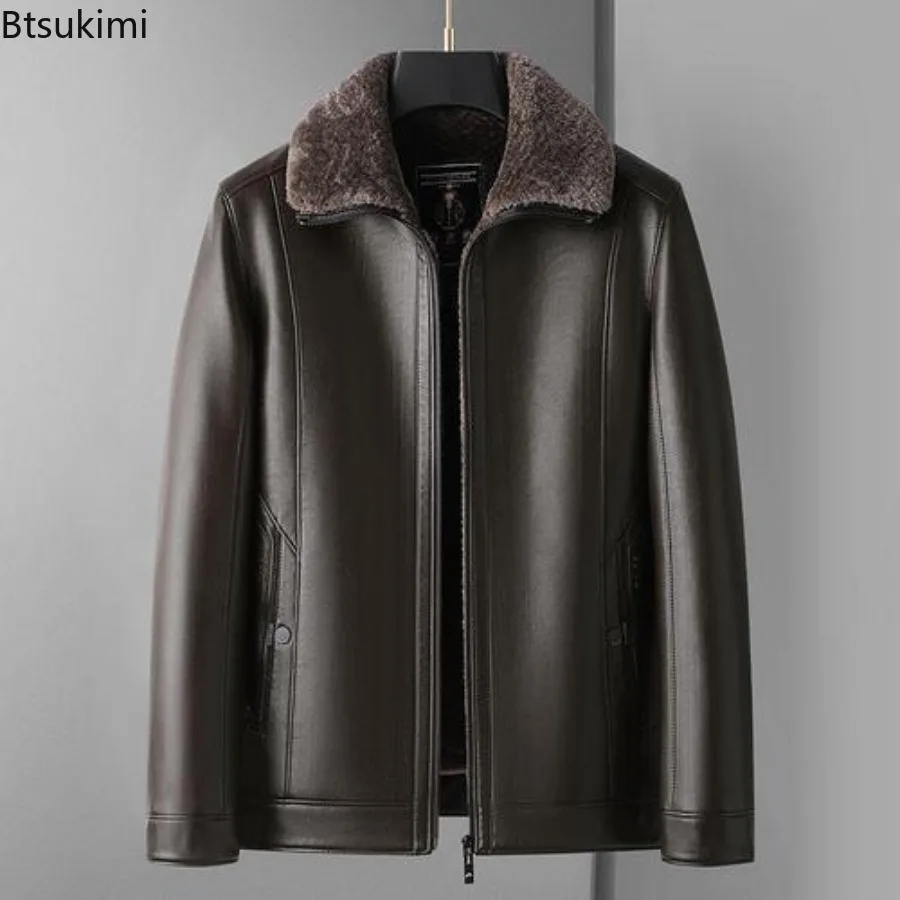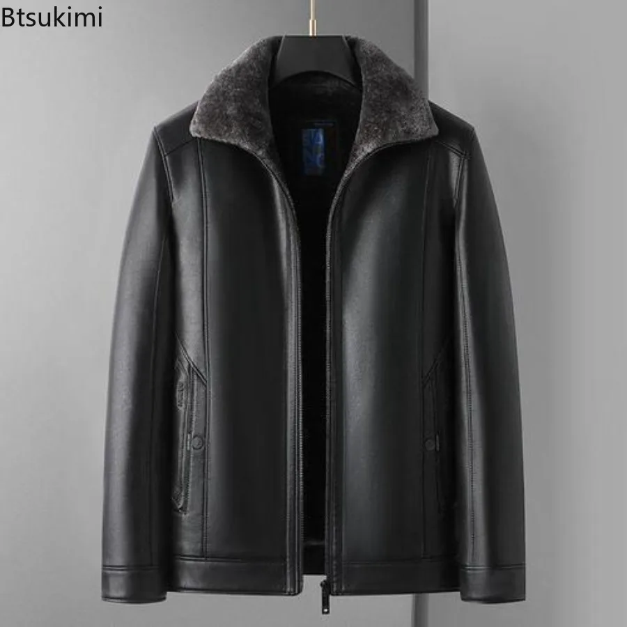 New Men’s Leather Jackets Autumn Winter Fleece Warm Motorcycle Coat Fashion Business Casual PU Leather Jacket Men Slim Outerwear