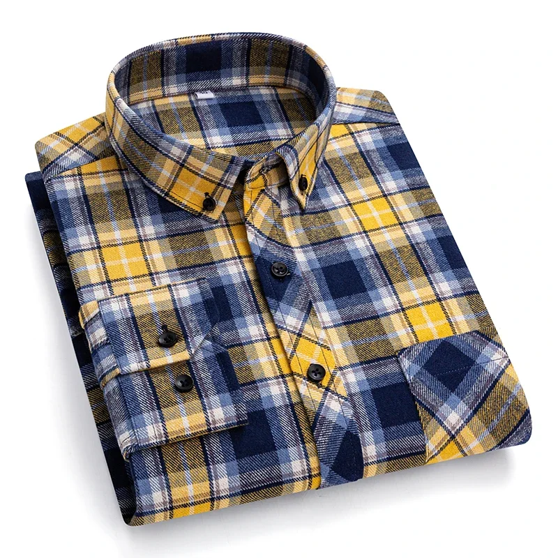 New Cotton Plaid Flannel Long Sleeve Casual Shirts For Men Plus Size England Youth Preppy Chic Autumn Winter Clothes Top Shirts