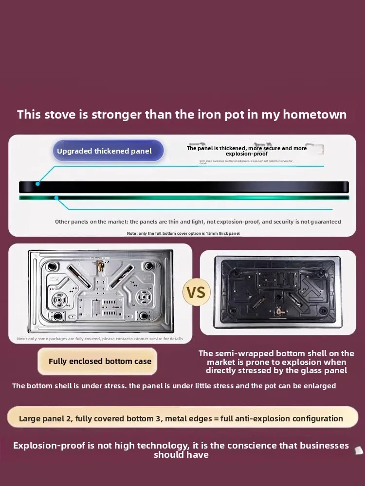 - Panel material: Tempered glass, stainless steel