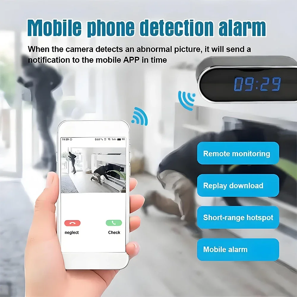 [Wi Fi live broadcast and remote viewing]: The wireless Wi Fi camera in the clock can be connected to the Internet, so you can play photos anywhere in the world. Just download the application and follow the instructions, and then you can see everything happening on your phone or tablet.