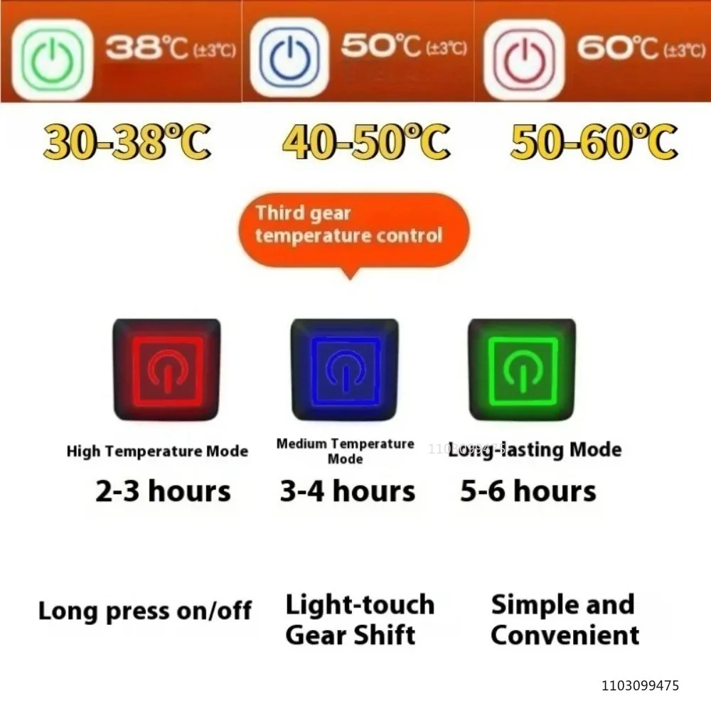 Green LED(about 30℃-35℃/86°F-95°F;About 5-6 Hours of Heating)