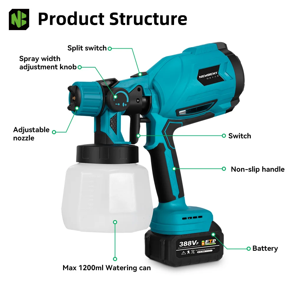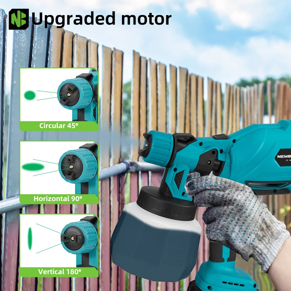 NEWBENY 1200ML Electric Spray Gun Cordless Paint Sprayer Portable Household Sprayer Flow Control Tool For 18V Battery