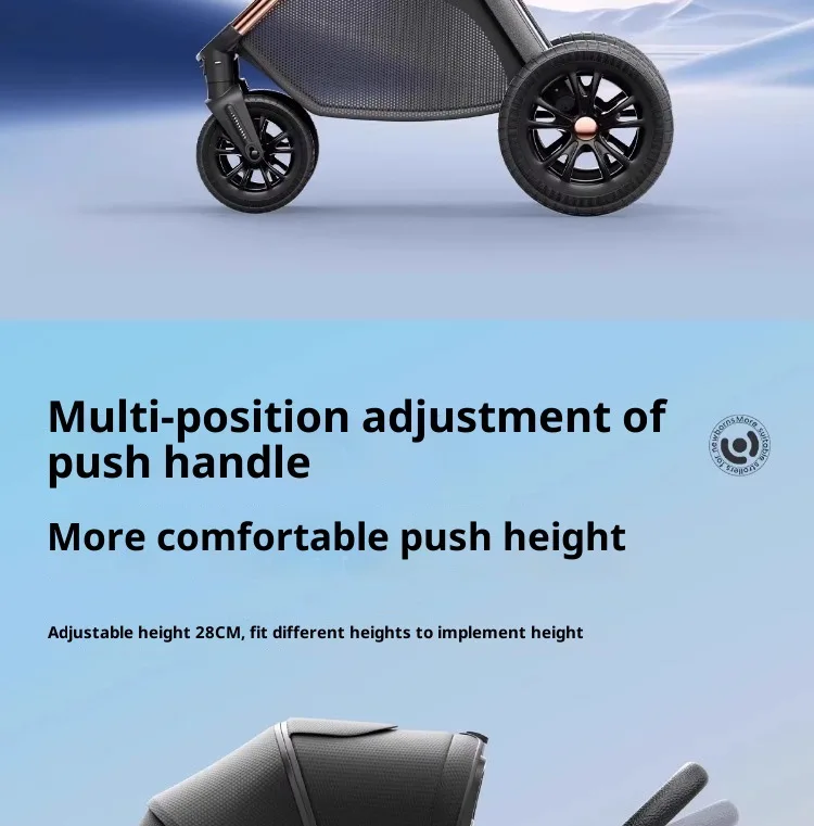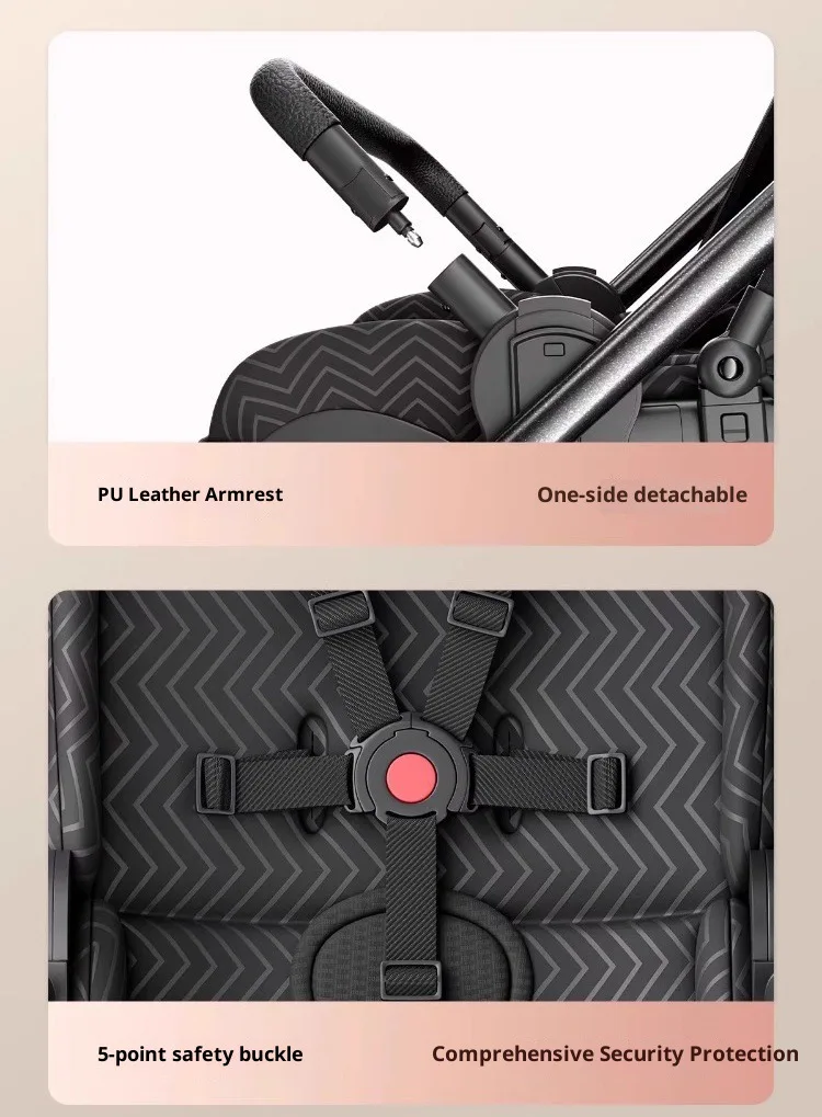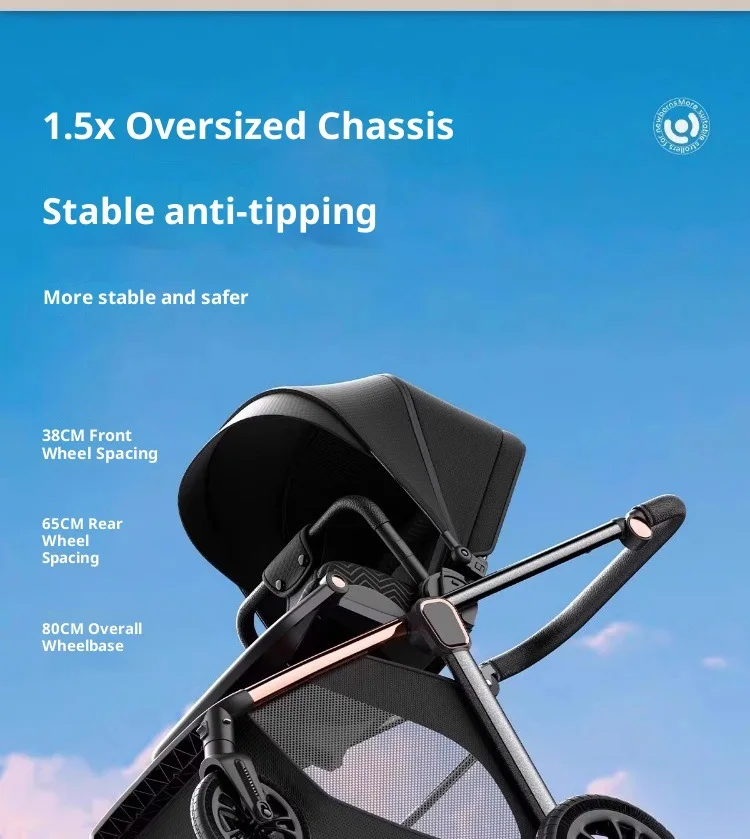 The stroller features a high sight reversible frame, allowing parents to easily monitor their baby's activity and interaction with the world.