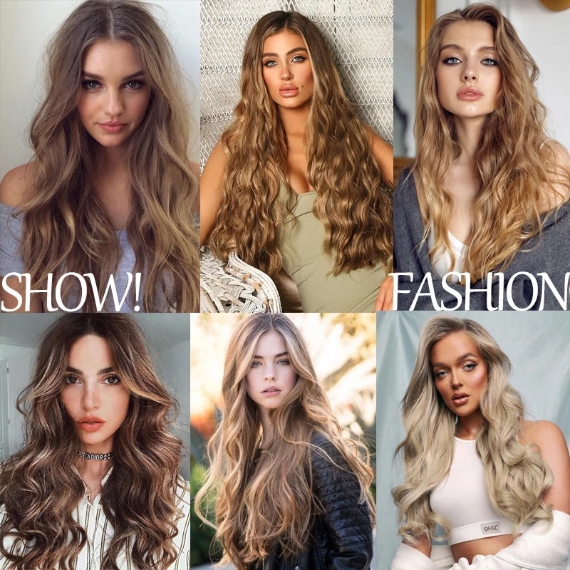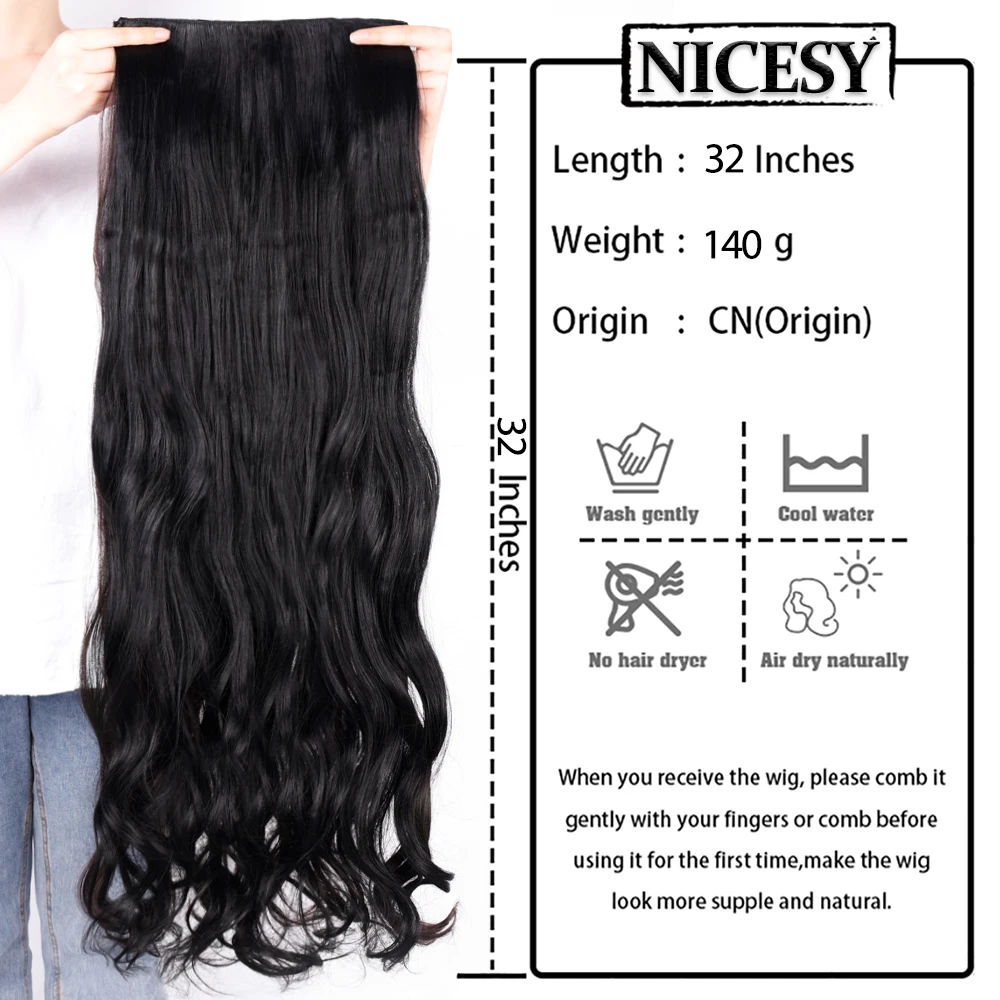 NICESY Long Wavy 5 Clips Hair Extensions 22Inch/32Inch Synthetic Clip On Hair Extensions High Tempreture Fake For Women