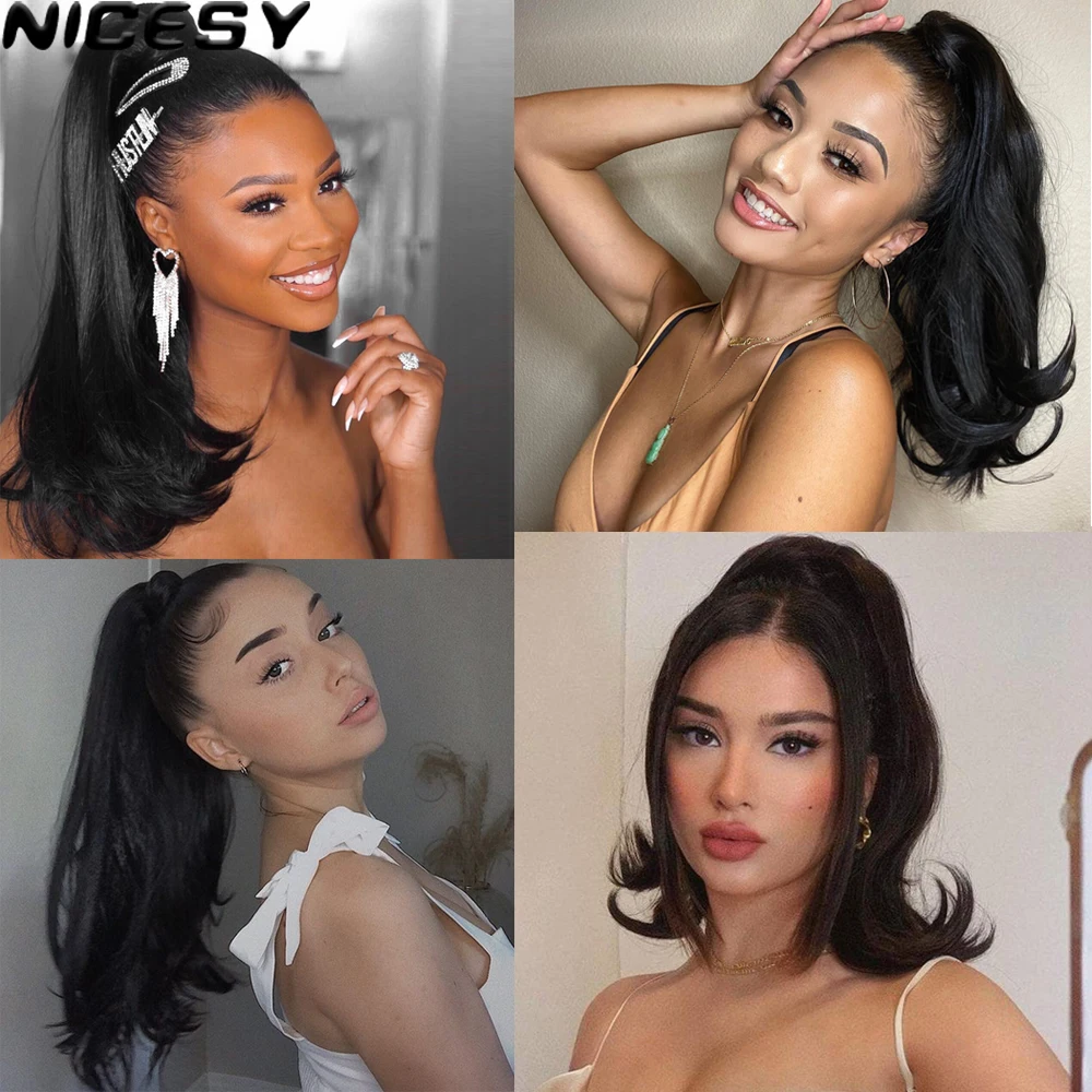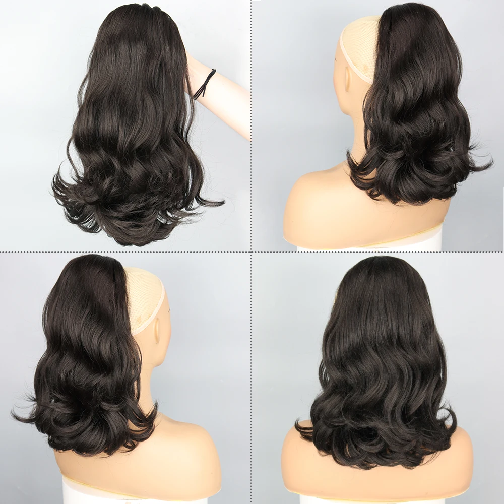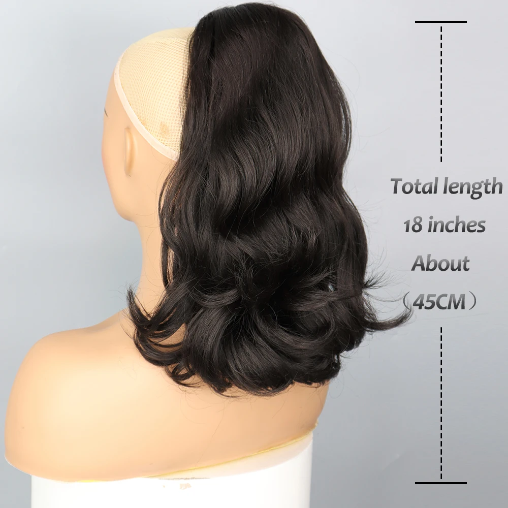 NICESY Tail Warping 18" Synthetic Kinky Straight Hairpiece With 2 Plastic Comb Drawstring Ponytail Hair Extension Black