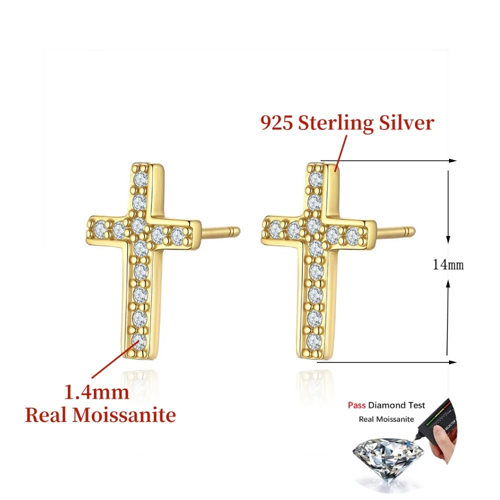 NKHOG Real Moissanite Cross Stud Earring For Women Men 925 Sterling Silver Ear Stud K Gold Plated Party Gift Jewelry Accessories