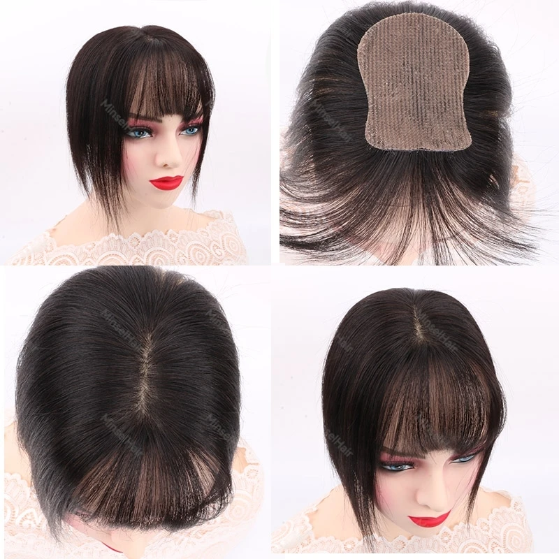 The hair is soft and nice and looks extremely realistic against my naturally dark black hair. The hair topper does not come pre-styled so i had to cut the bangs myself. While i was cutting it, i accidentally cut some of my own hair since it blended in so well lol. My husband thought i had cut my hair before i told him it was just a wig. Overall, great quality and works perfectly for my use case, which is wanting to get the bangs look sometimes without actually cutting my hair.