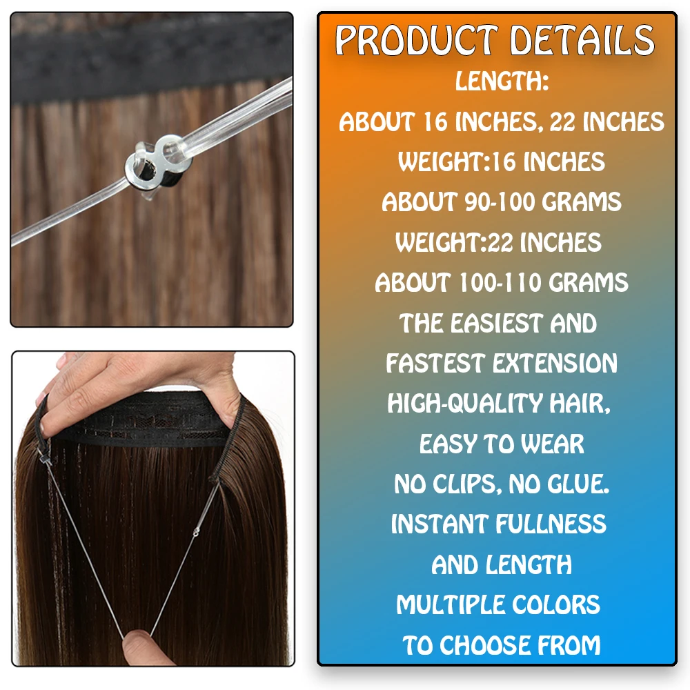 Halo hair,design with hair on a wire,offers an innovative hair extension that adds length and volume to your own hair in less than one minute!!