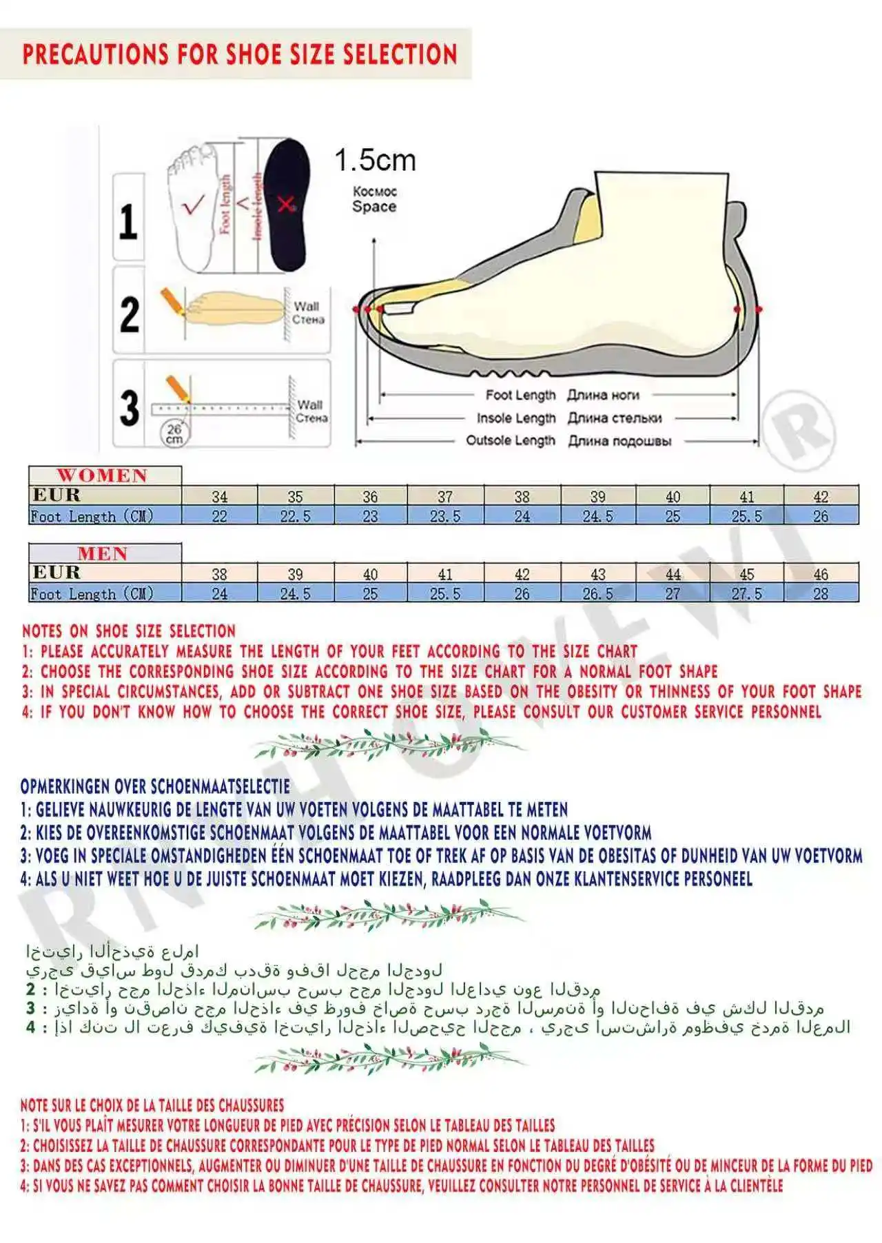 ***If your foot is narrow and thin, you can choose one size smaller.