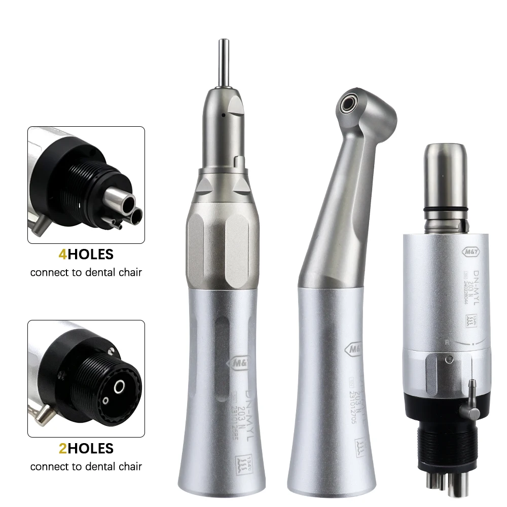 The quality is very good, it comes with all the parts, fits well with the dental unit, both the handpiece and contra-angle work well.