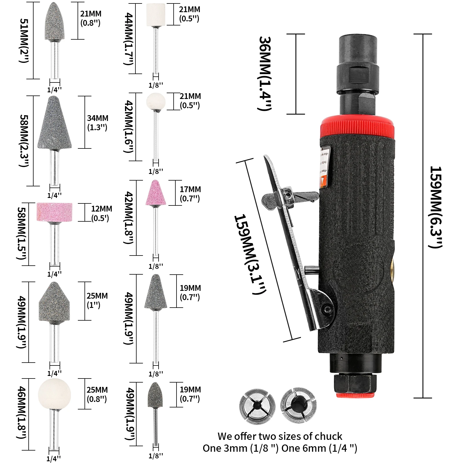 Collet size: 1/4" (6mm)1/8" (3mm)