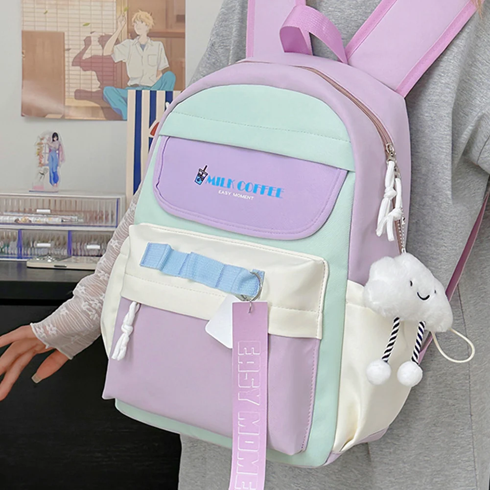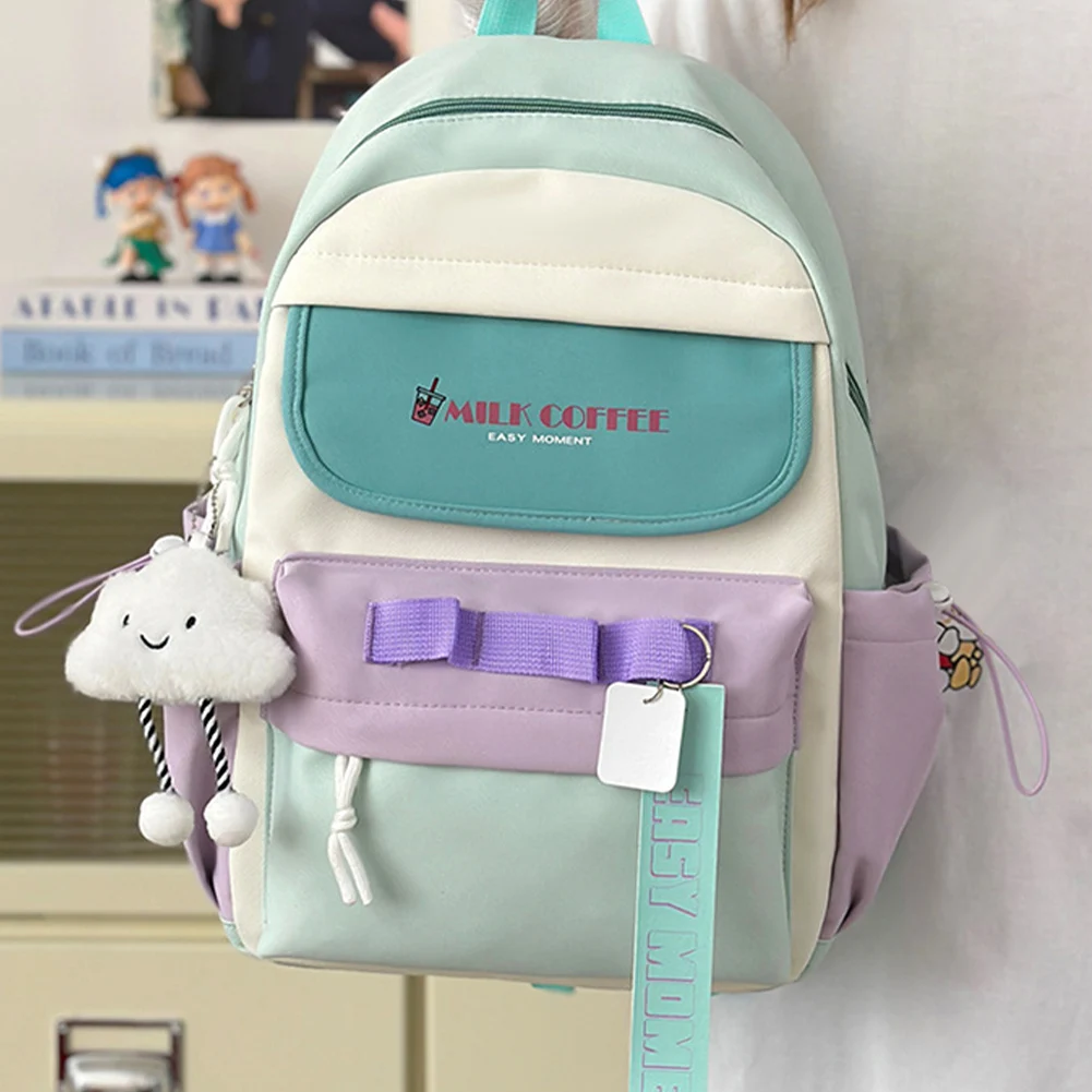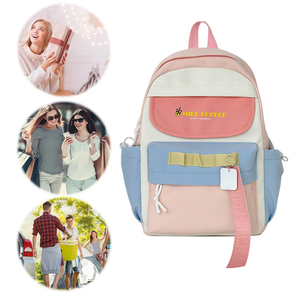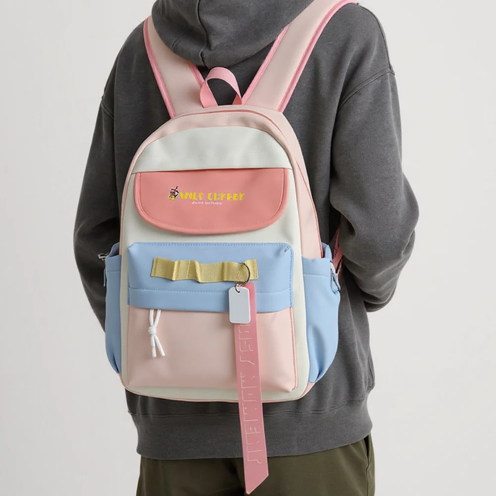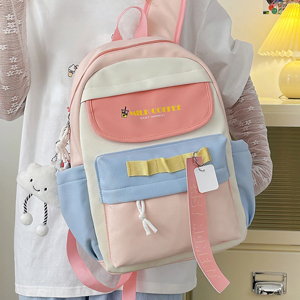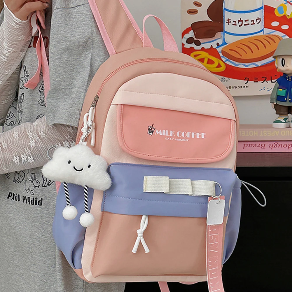 1.Unique Japanese-style Backpack: This japanese-style backpack showcases a cute patchwork design with contrasting colors. Equipped with three hanging holes on the front pocket for your adorable animal pendants and cute bag badges, it becomes a fashionable sweet bag for any occasion, emitting your unique charm in the crowd. Multiple compartments design helps you organize items with ease.