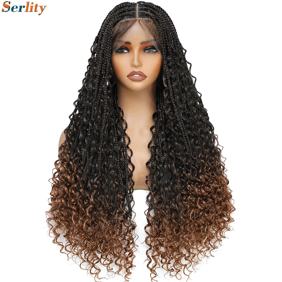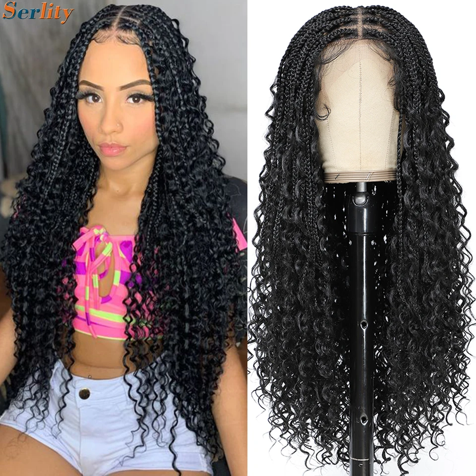 Hair style :Bohemian Knotless Box Braids Wig, Long Braided Lace Wigs Curly Goddess Box Boho Braid Wigs for All Women;
